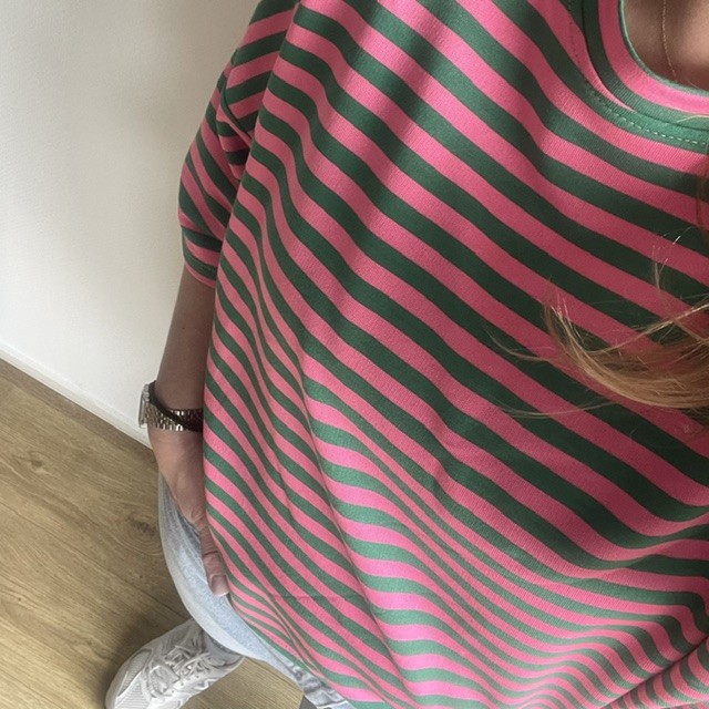 Sweatstof truitje – groen/roze streep